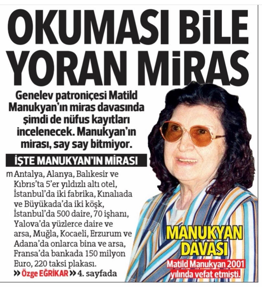 2001 tarihinde ölen manukyan'ın mirası bölünemediği için davalık olmuştu.